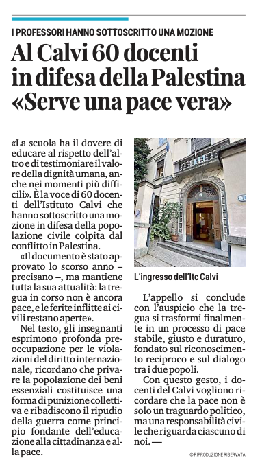Nell’ambito della mobilitazione trasversale in atto per denunciare lo sterminio della popolazione di Gaza e il neocolonialismo di Israele ieri è stata sottoscritta da 105 docenti del IIS RUZZA la mozione parzialmente riportata dal Mattino di Padova.