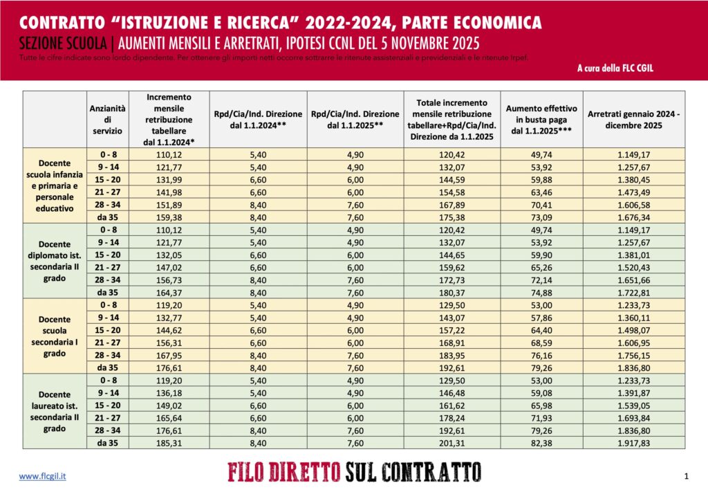 - 3. è prevista «a titolo di arretrati» una «una tantum» – sempre “lorda” – di 1.640 € per i/le docenti e 1.440 per gli/le ATA, una mancia che però spetterà solo a chi era in servizio nell’a.s. 2023/2024 [art. 16, comma 1, CCNL 2025].