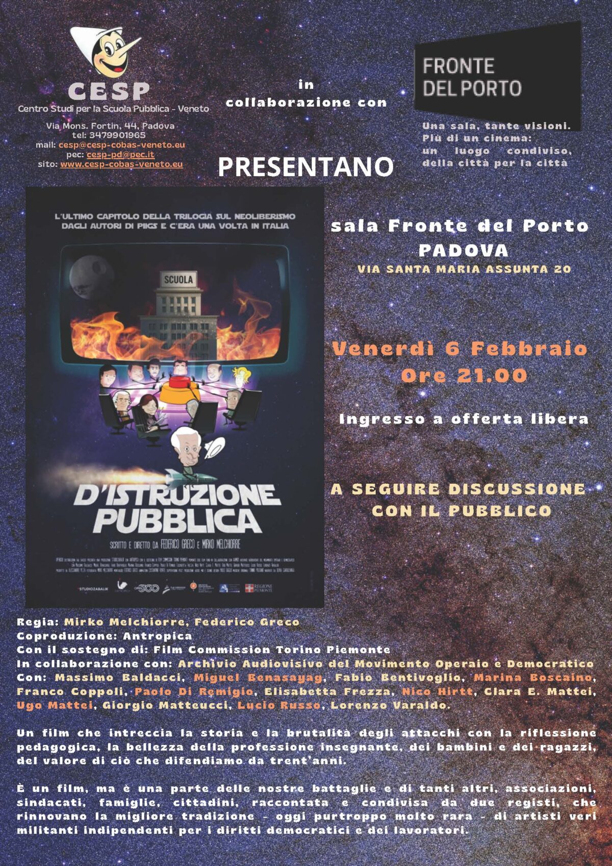 CESP Centro Studi per la Scuola Pubblica – VENETO in collaborazione con Fronte del Porto – Una sala, tante visioni PRESENTANO D’ISTRUZIONE PUBBLICA Regia: Mirko Melchiorre, Federico Greco Coproduzione: Antropica…